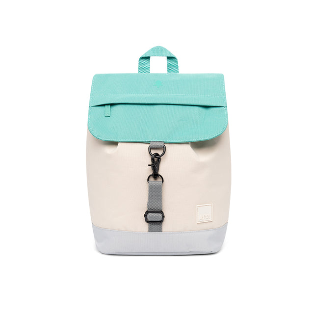 The Scout mini is the small version of the iconic "Scout" model, crafted in a combination of smart functionality and timeless aesthetics, featuring a rounded silhouette with metal hook and flap closure and a wide-mouth draw-string opening, easy access front pocket and a security pocket on the back, and adjustable cotton straps, with a large main compartment and a separate pocket for notebooks or small electronic devices, made using the recycled PET sustainable fabric, with a matte look and feel which evokes real canvas, lightweight and  durable in gorgeous two-tone colour pallet, with the perfect amount of space to carry all your essentials that will easily become your go-to for daily commute, gym and weekend adventures.