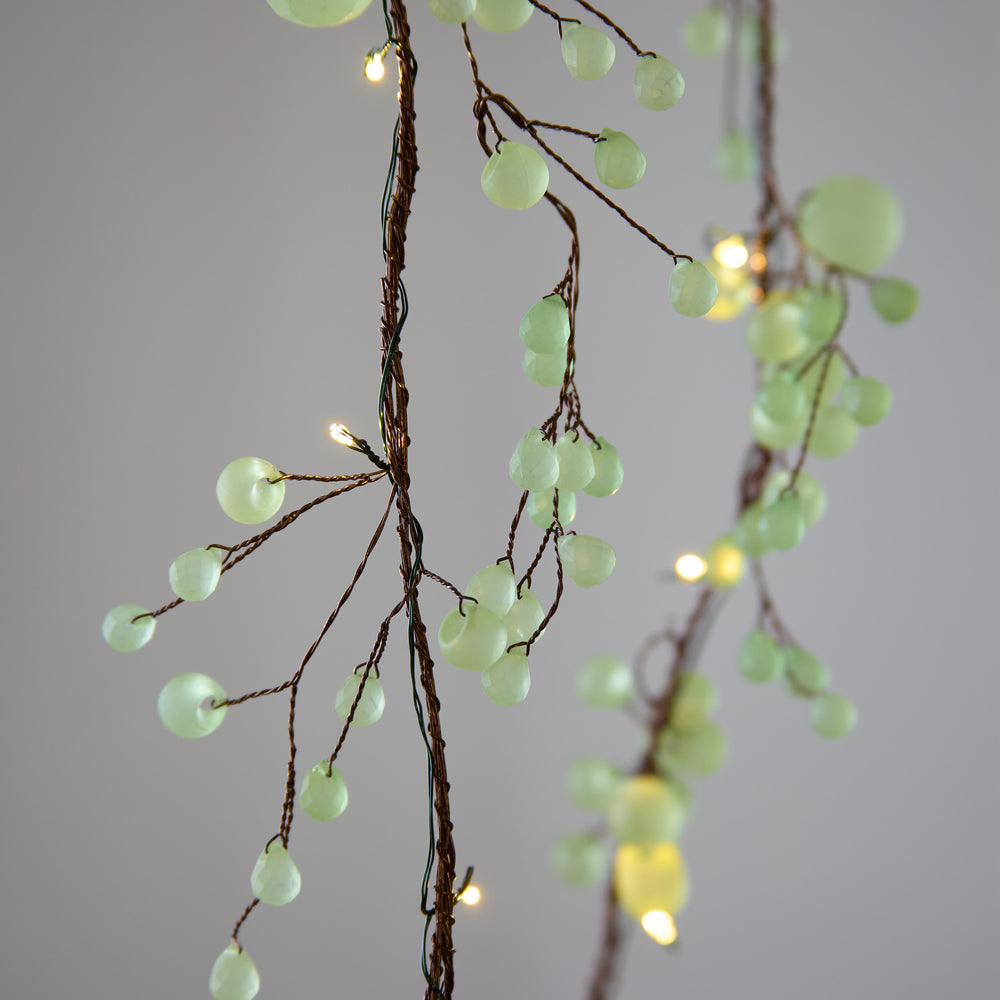 Featuring delicate matt green acrylic crystals beads entwined with 100 warm white LEDs that sparkle with every glow, they cast a mesmerising light creating an intimate atmospheres in bedrooms, or living rooms, place on your mantlepiece or window sills for a dazzling light display that's will brighten up your home