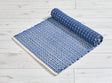 The Haveli rug is made from 100% cotton handwoven using traditional methods by skilled artisans in a gorgeous deep blue geometric pattern rolled and tied with cotton tape, perfect for the entrance hall, kitchen or bedroom.