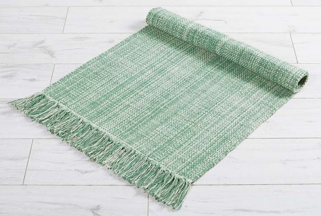 Give your home some spring colours, with this simple yet elegant rug, instantly transforming any room in your home, the chambray rug is made from 100% cotton handwoven in a beautiful pastel green colour with a fringed edge.