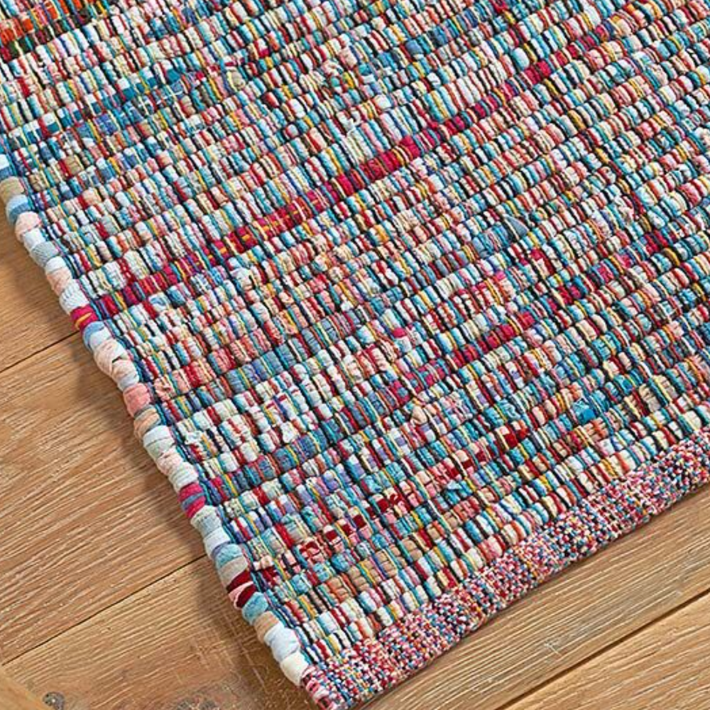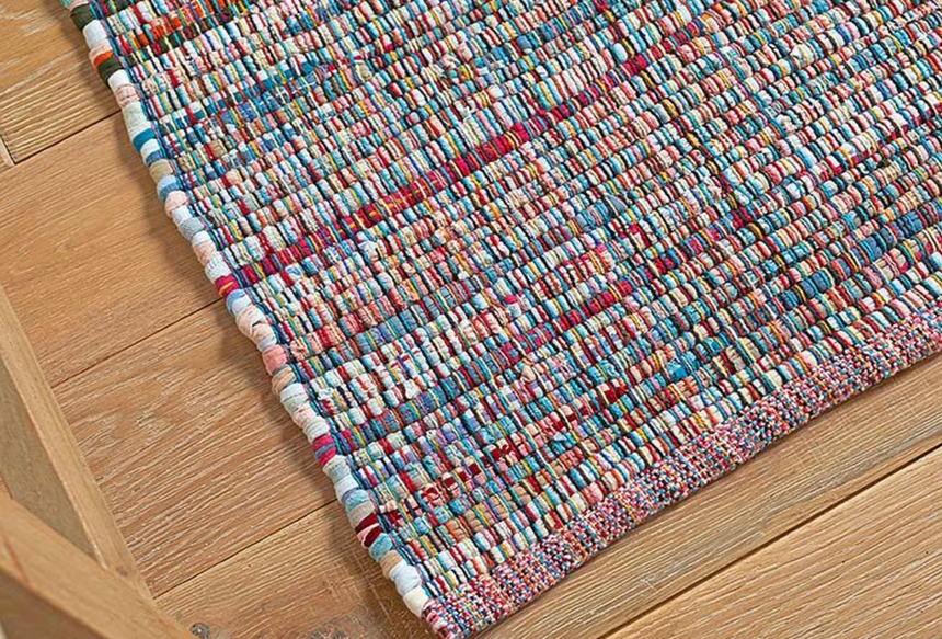 The chindi rug from Walton & Co is handmade from 100% recycled fabric strips tightly weaved together in beautiful bright colours, that will add texture and character instantly transforming any room in your home.
