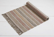The Halden rug from Walton & Co is made from 100% recycled fabric strips weaved in a stripe pattern in tones of terracotta, ocher and grey with a knotted grey fringe that will add texture and character instantly transforming any room in your home.
