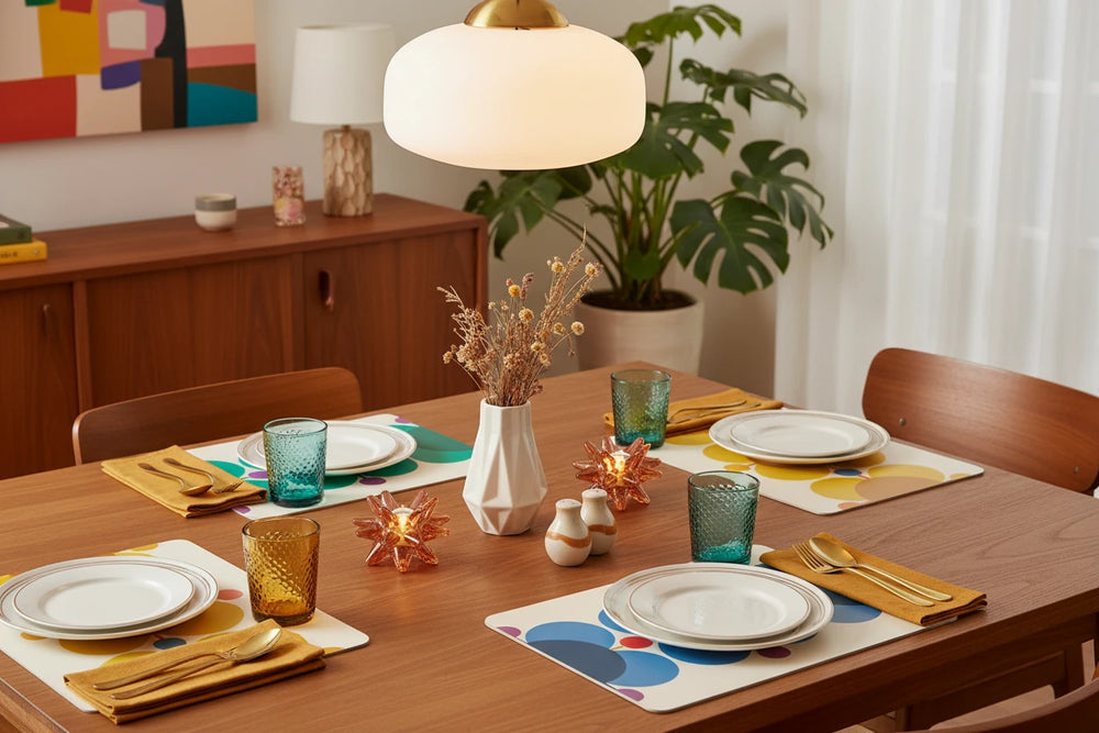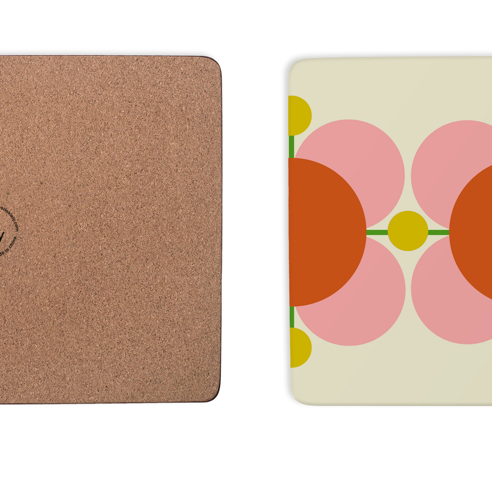 Protect your surfaces in style with this stunning set of six placemats , featuring Orla Kiely's iconic Atomic Flower design, each placemat showcases the designer's signature bold, flower pattern in vibrant colours that instantly elevate any table setting, crafted for both function and beauty, these coasters guard against heat, scratches and spills whilst adding a pop of contemporary flair to your home.