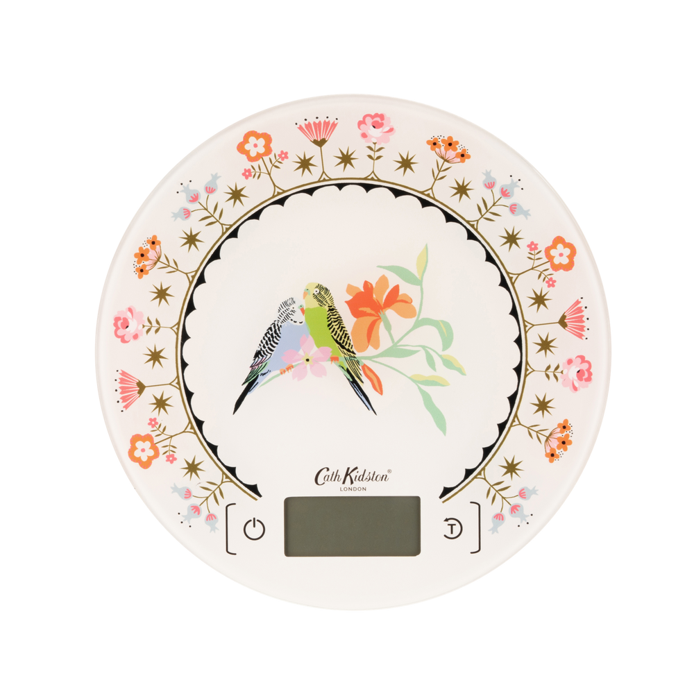No kitchen is complete without a measuring scale, this gorgeous digital scale is made from toughened glass featuring a stunning illustration of two adorable budgies finished with pastel pink edging & a retro floral pattern with accurate and easy-to-read metrics and imperial measurements and a 5 KG capacity that will make cooking for friends and family a joyful occasion.