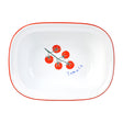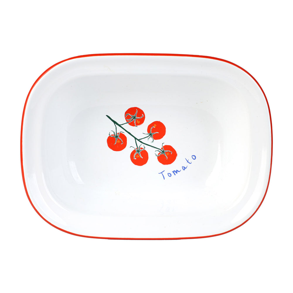 Features a playful bright cherry tomatoes motif on the base with a contrasting red rim & green exterior, that will inject a Mediterranean sunshine to your meals, made from hardwearing, lightweight and shatter proof enamel hand finished and dipped multiple times to achieve its vibrant colours, perfect for everyday oven cooking and serving, from baked dishes to al fresco dining