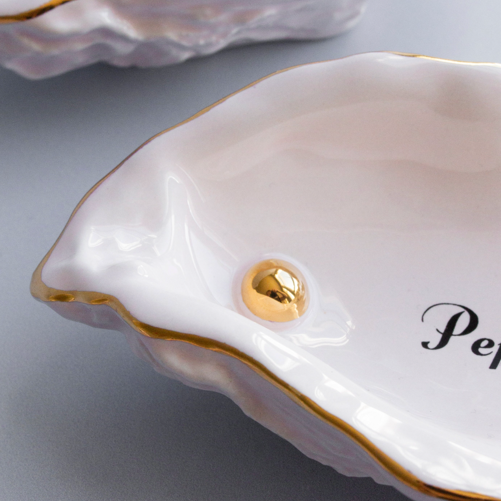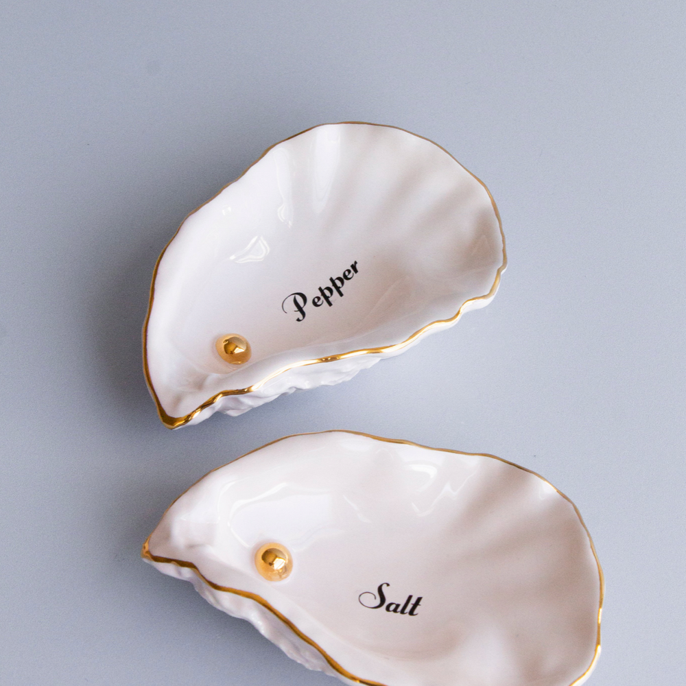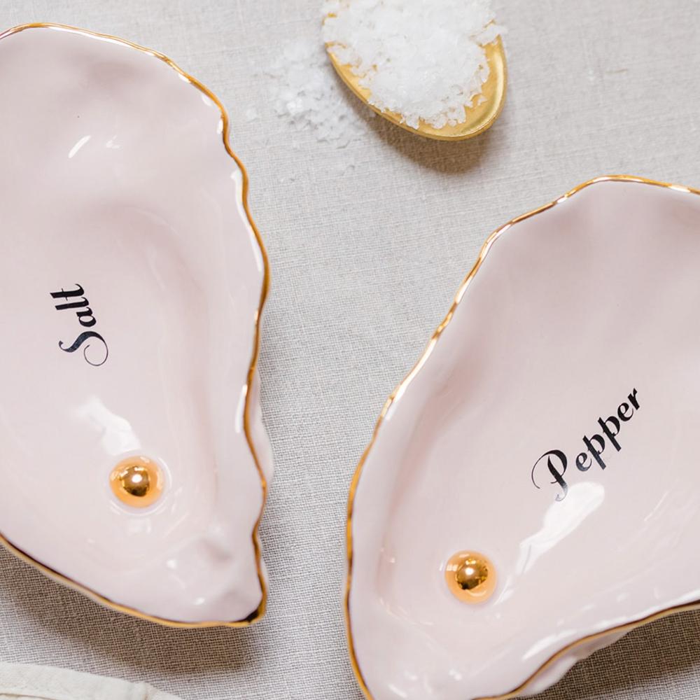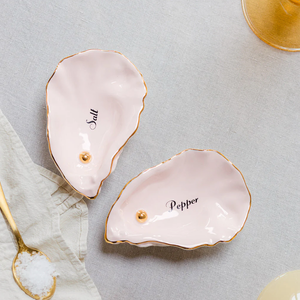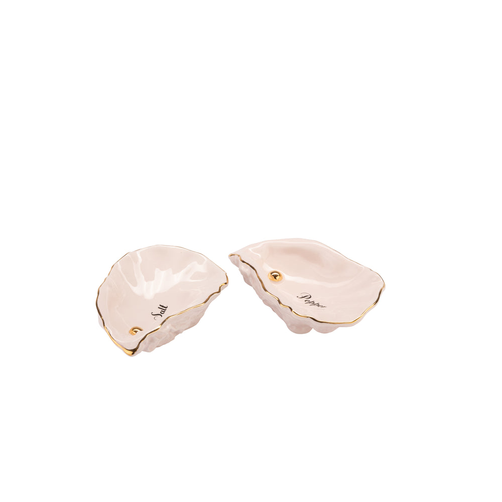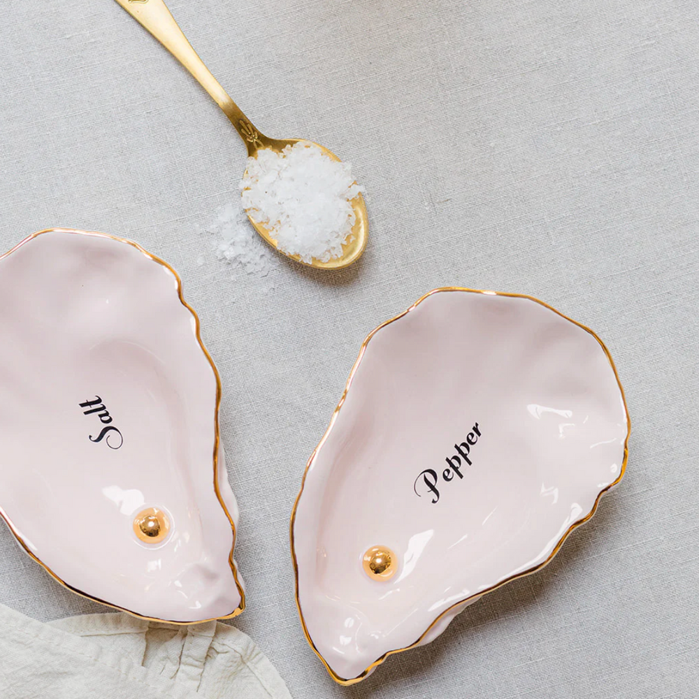 Upgrade your kitchen with this adorable oyster shaped pinch bowl set , versatile and compact bowls perfect for holding spices, herbs, and small ingredients while you cooking or baking, or serving condiments, in a playful pastel pink colour finished with beautiful intricate gilt gold details.