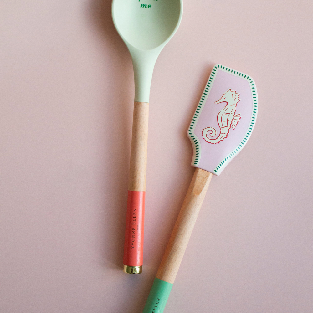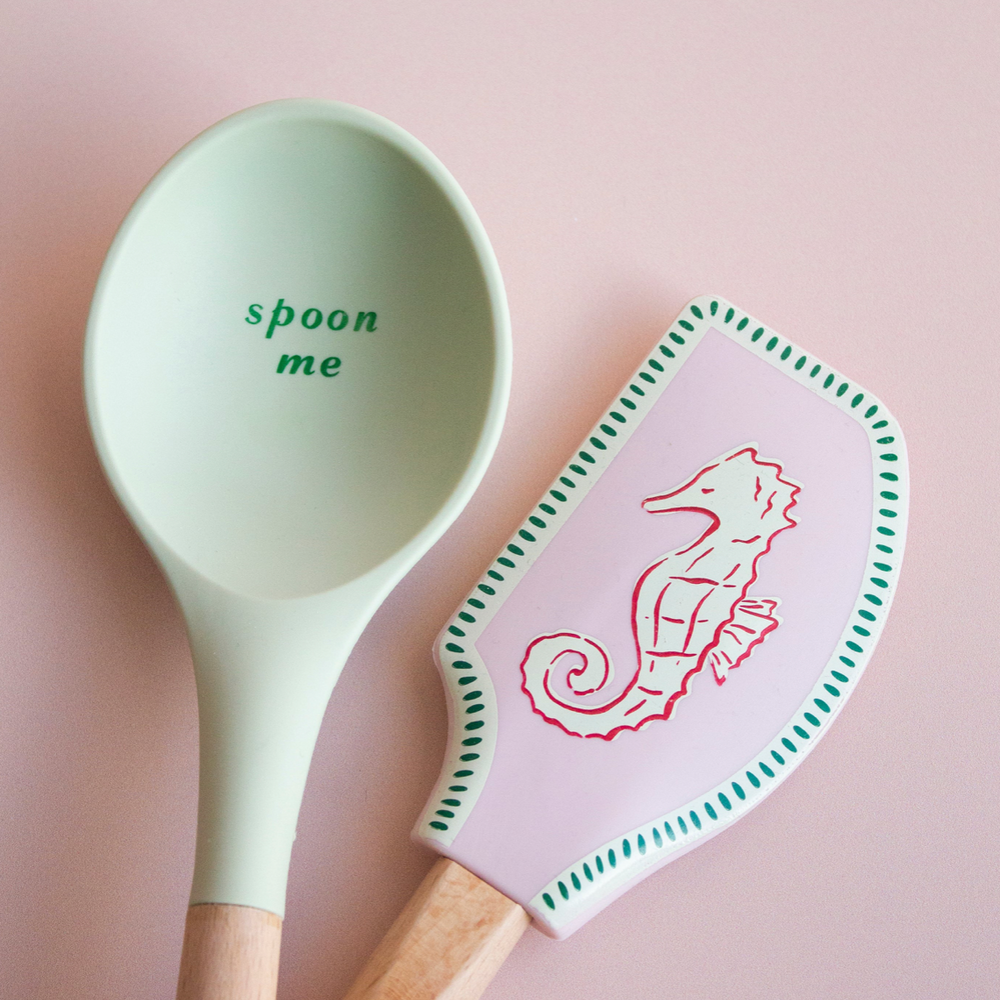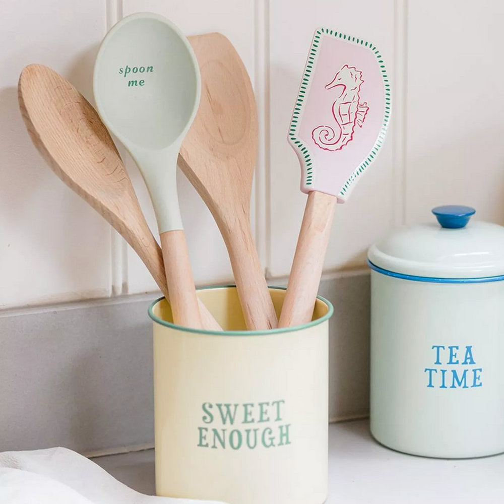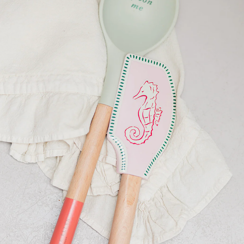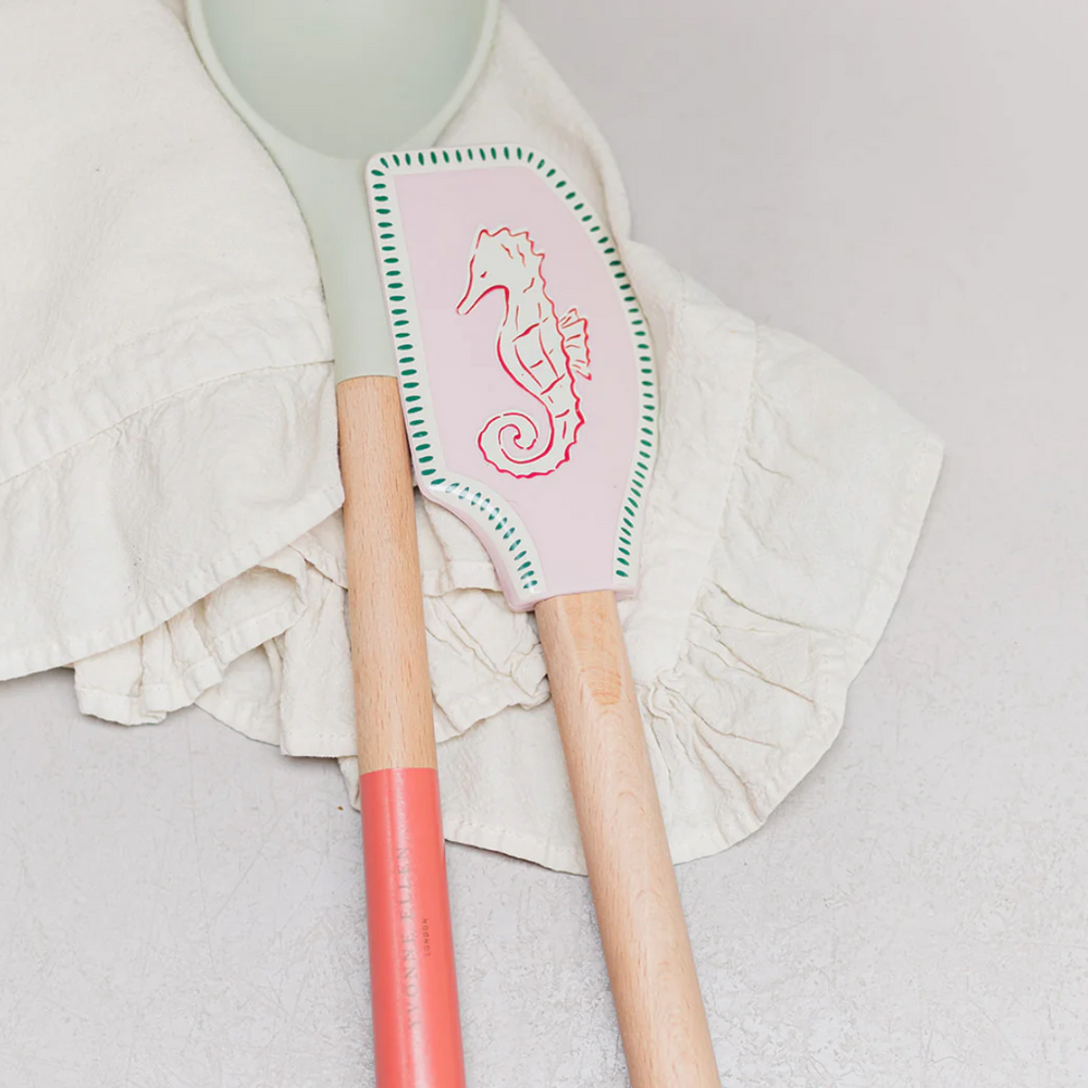 Whether you’re baking tasty cakes, treating yourself to a morning fry-up or cooking a roast dinner, having the right utensils makes life a lot easier, this gorgeous spatula & spoon set featuring a cute seahorse illustration in beautiful pastel colours, made from high-quality beech wood handles and food-grade silicone that can withstand temperatures as high as 240°C, suitable for use with all pots and pans, including non-stick and enamelled surfaces.