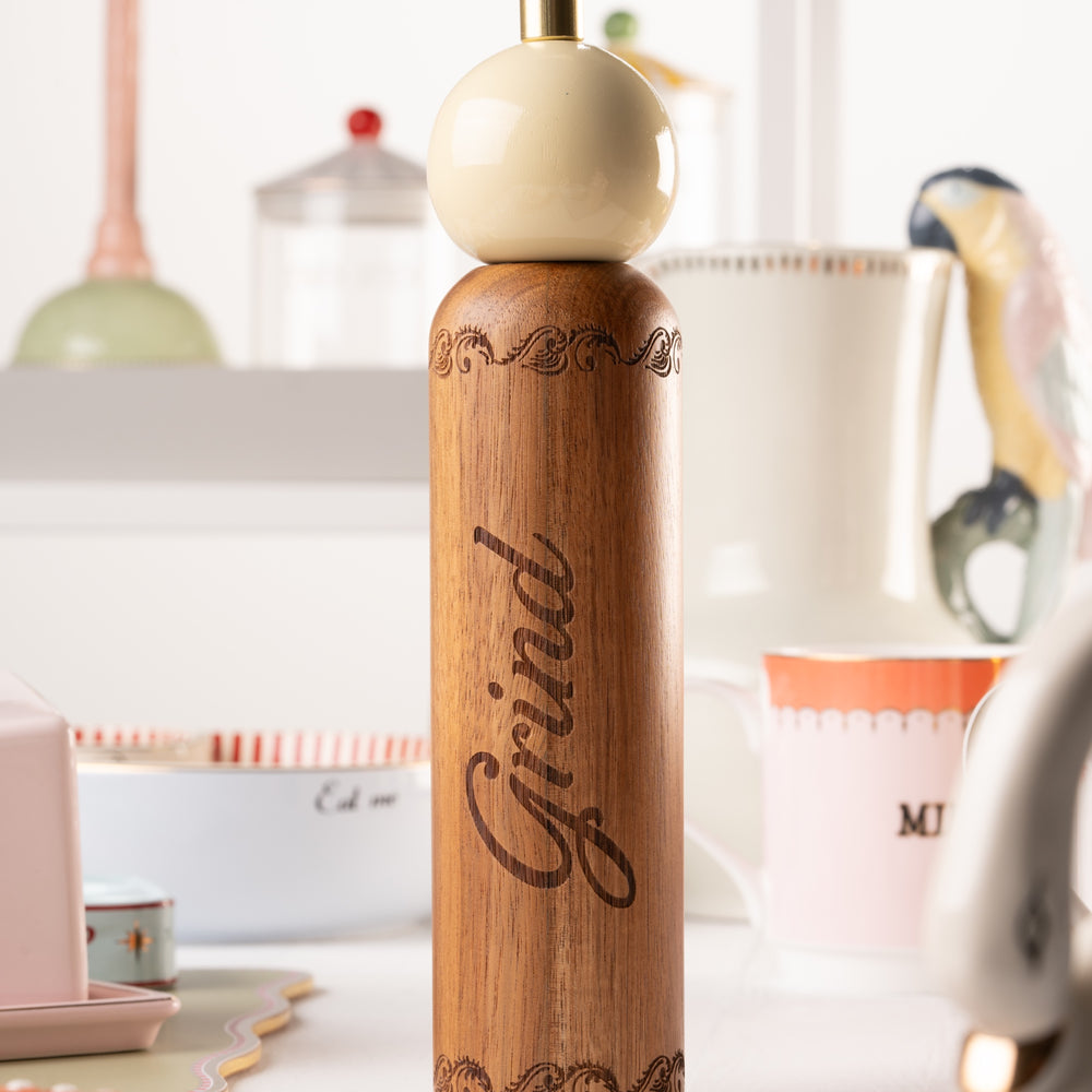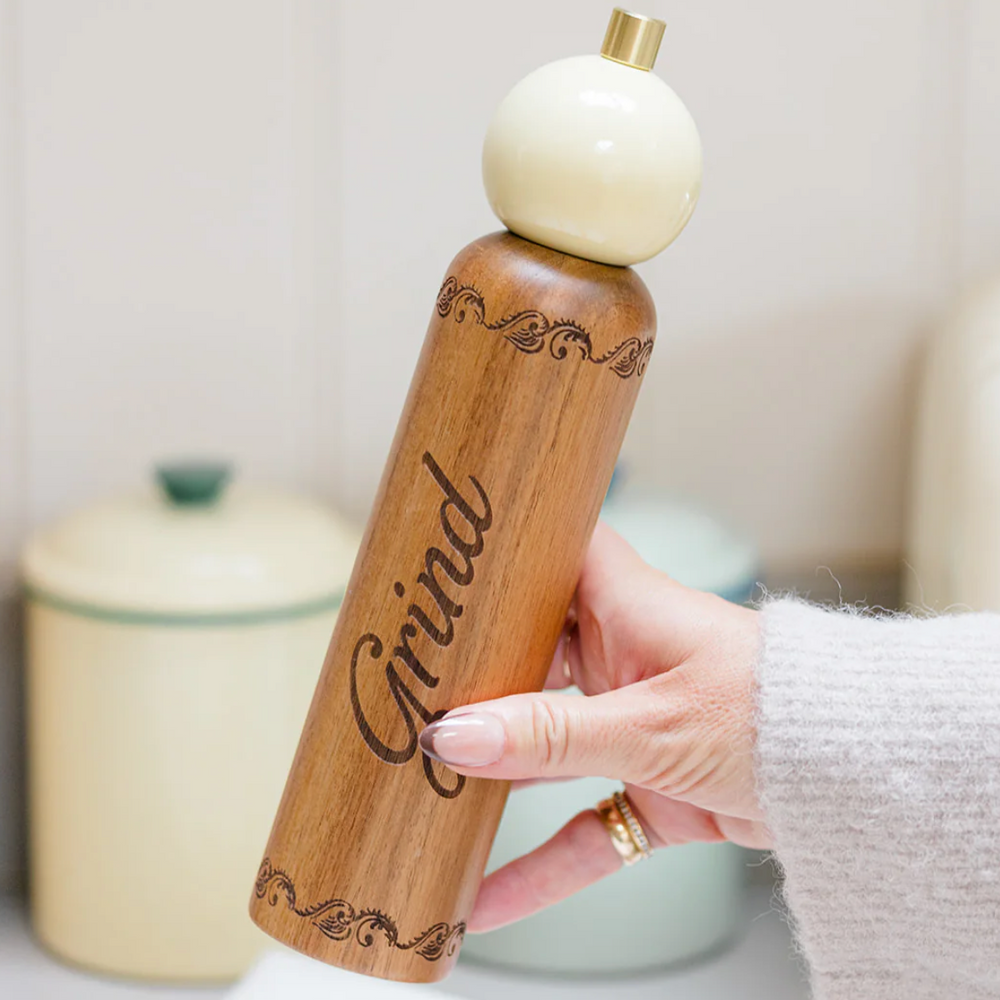 Elevate your culinary experience with this essential pepper grinder, crafted from natural acacia wood, in a sleek, elongated shape with etched detailing that brings a touch of vintage charm to your cooking space whilst making it easy to enjoy freshly ground pepper whenever you need it, whether you're preparing a simple weeknight meal or something more special, this dependable tool is here to support your culinary journey.