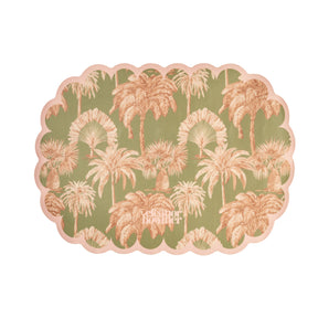 Featuring a gorgeous palm print with a pastel pink scalloped edge with a non-slip surface to prevent your pet bowls from moving around on the floor.