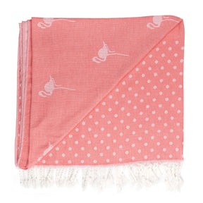 Sophie Allport Cotton Hammam Beach Towel/ Blanket, Flamingo