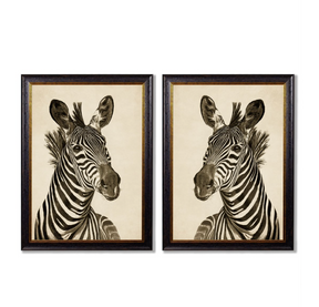 Vintage Framed Print, Zebra (Pair Of Two Prints)