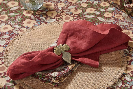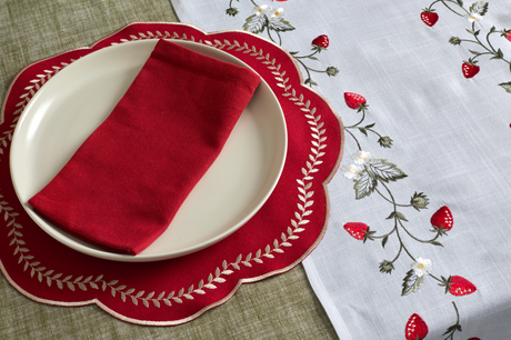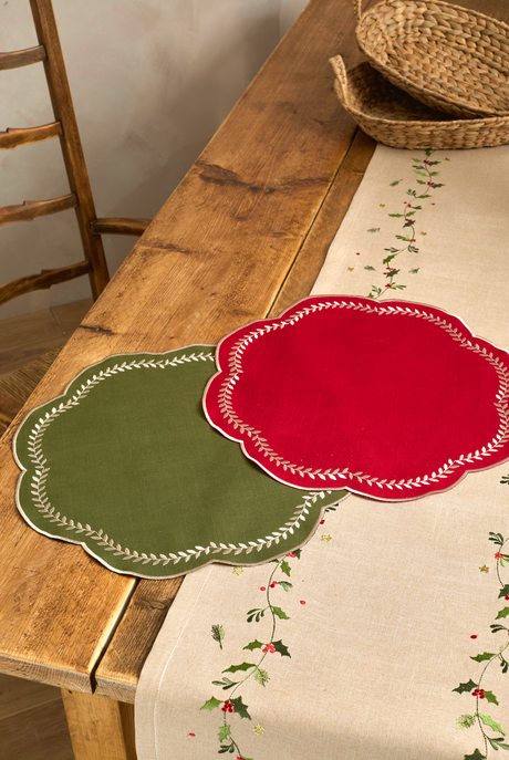 Walton & Co Scalloped Embroidered Leaf Placemat, Red