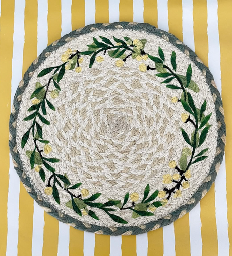 Walton & Co Circular Plaited Jute Placemat, Olive