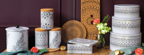 Sara Miller Square Storage Canisters Haveli Garden, Set of 3