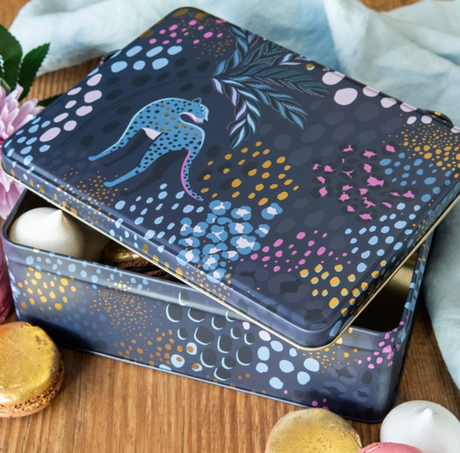 Sara Miller Deep Rectangular Storage Tin, Midnight Leopard