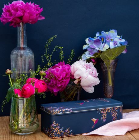 Sara Miller Deep Rectangular Storage Tin, Hummingbird Paradise