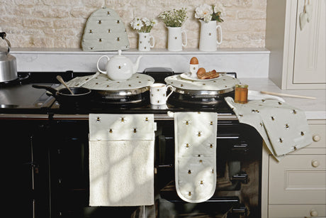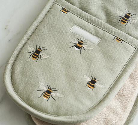 Sophie Allport Double Oven Glove Bees, Pale Sage