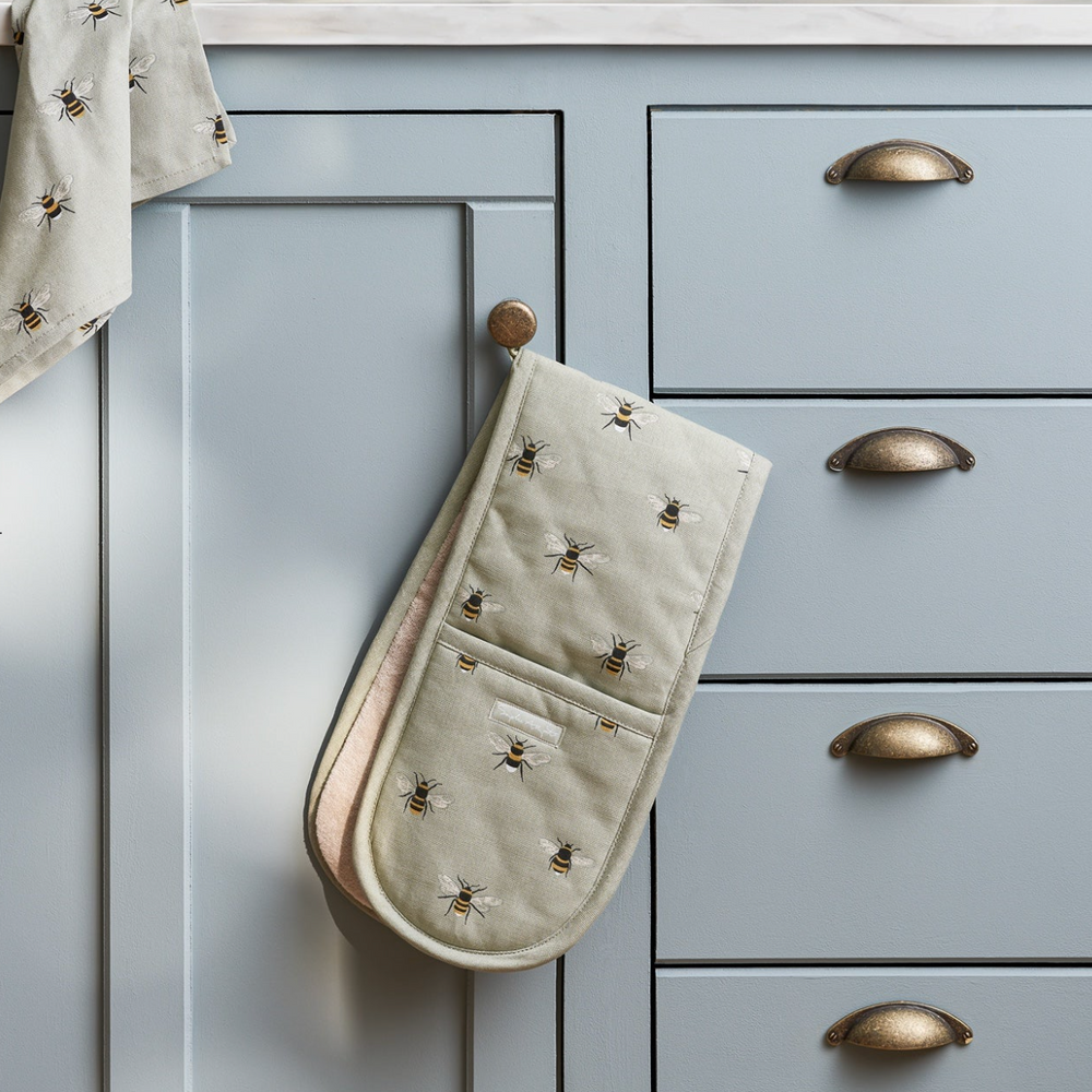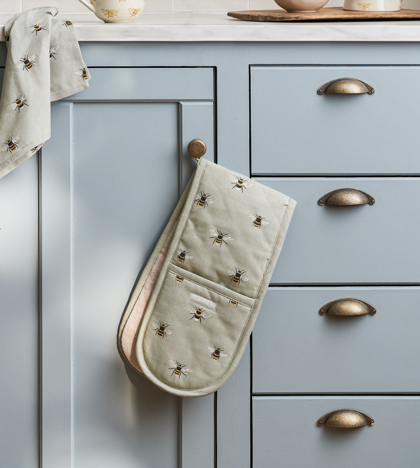 Sophie Allport Double Oven Glove Bees, Pale Sage