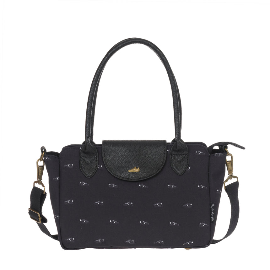This gorgeous and elegance tote bag designed with love and summer in mind, practical and stylish in beautiful black colour featuring trendy trainers from Sophie's absolutely fabulous collection, with a full zip across the top & a magnetic popper closure for easy access with a roomy interior for everyday essentials, wallet, keys, water bottle, perfect for every day or work commute or an overnight or weekend tote.