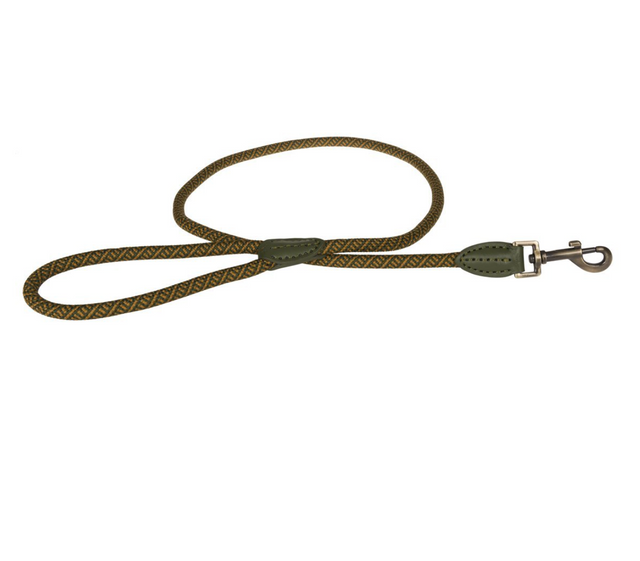 This trendy rope lead is crafted from woven polyester, It is hardwearing and easy to use, with leather attachment and antique brass trigger hook, available in a range of colours and sizes.