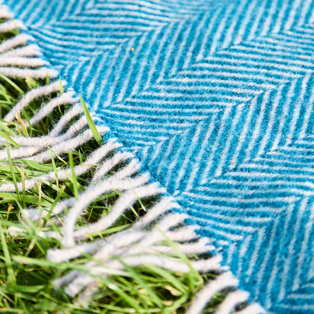 Tweedmill Polo Pure Wool Knitted Picnic Blanket, Herringbone, Teal & Hazel