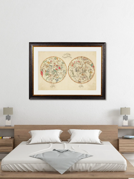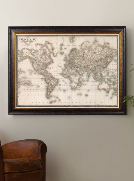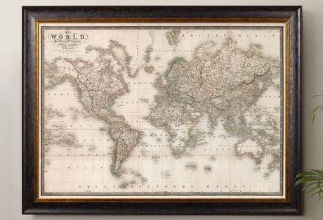 Vintage Round Framed Print, World Hemispheres, Western Hemisphere