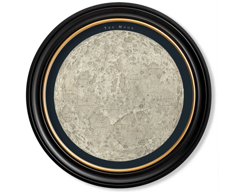 Vintage Round Framed Print, 1877 Map Of The Moon