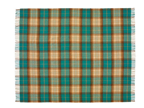 Tweedmill Cottage Check Pure New Wool Throw, Ocean