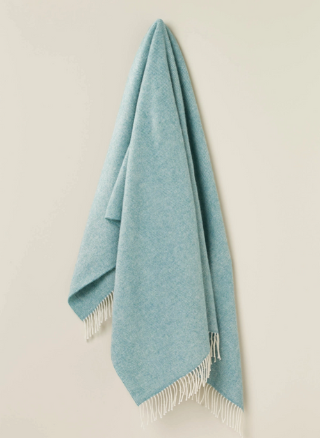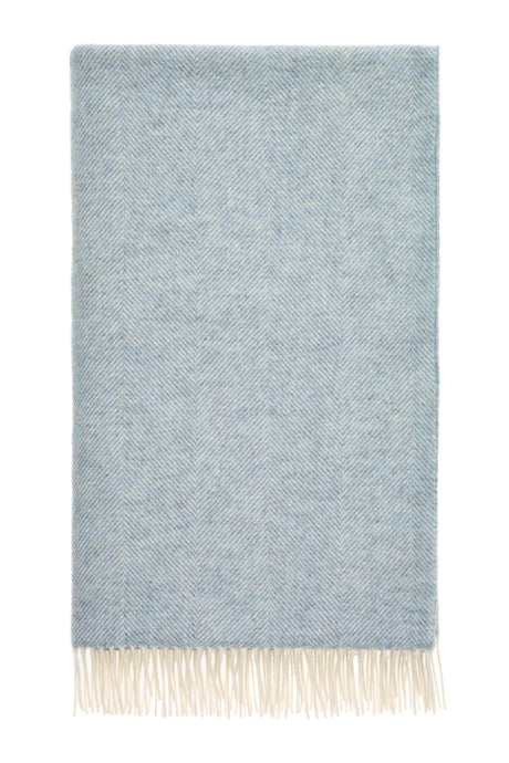 Bronte By Moon Herringbone Shetland Wool Throw, Duck Egg Blue