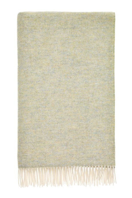 Bronte By Moon Herringbone Shetland Wool Throw, Light Sage