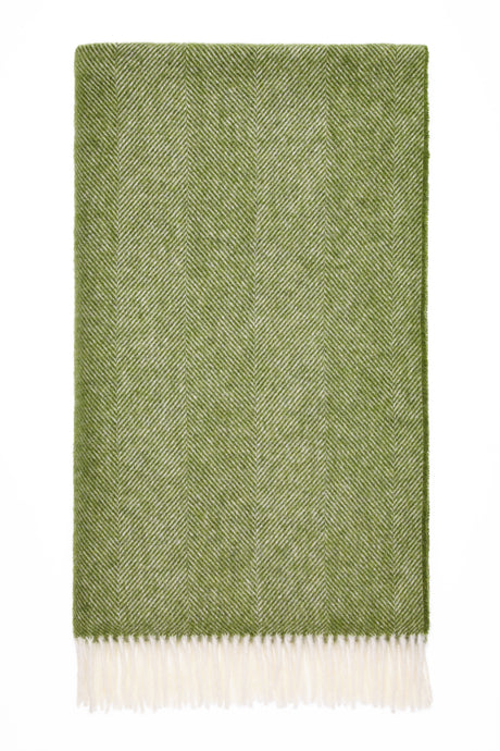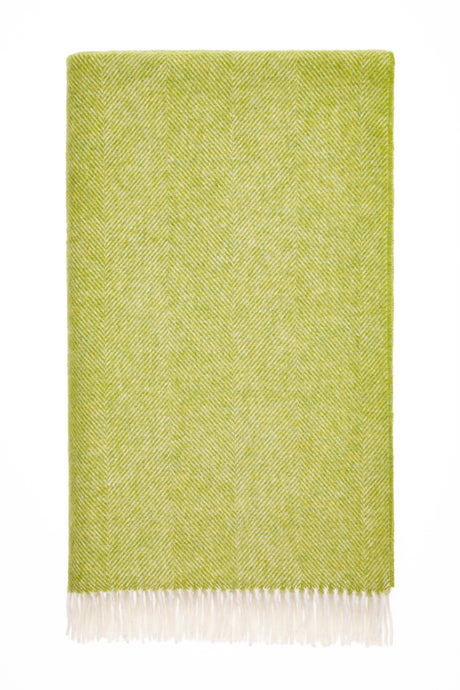 Bronte By Moon Herringbone Shetland Wool Throw, Lime