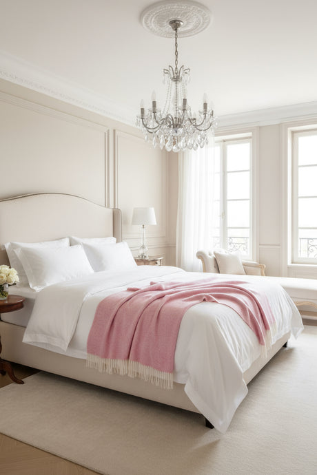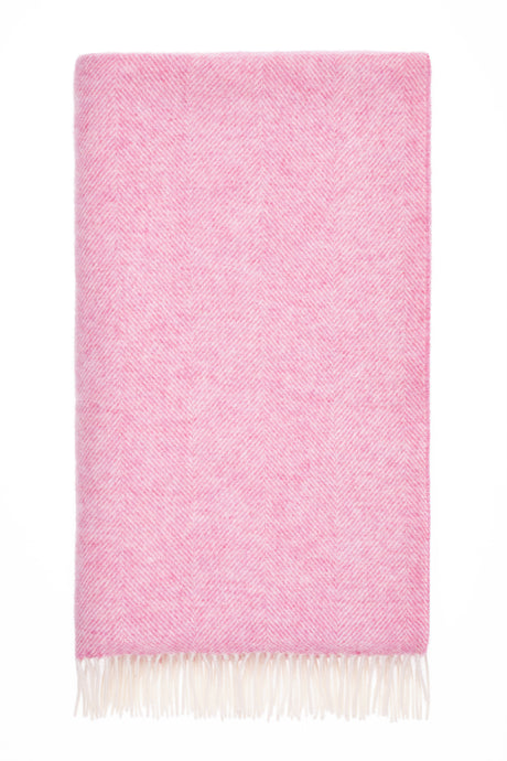 Bronte By Moon Herringbone Shetland Wool Throw, Pale Pink