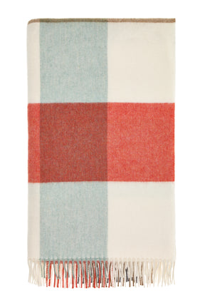 This stunning throw is made from 100 % pure supremely soft merino wool, in a classic block check pattern in beautiful hues of orange & soft blue with tassels at each side, that will instantly uplift your sofas and armchairs.