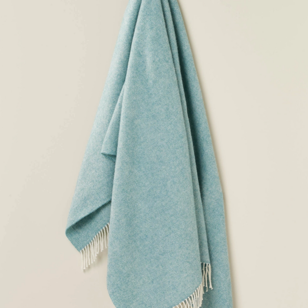 Bronte By Moon Herringbone Pure New Wool Throw, Aqua
