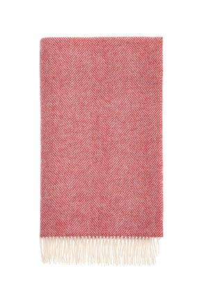 Bronte By Moon Herringbone Pure New Wool Throw, Raspberry Ripple