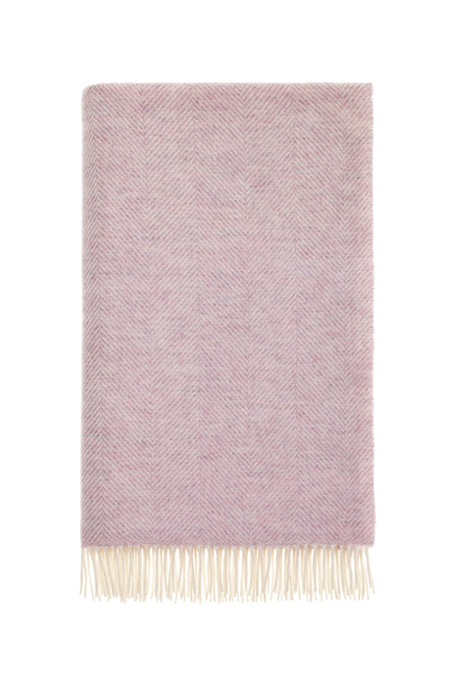Bronte By Moon Herringbone Pure New Wool Throw, Sugared Almond