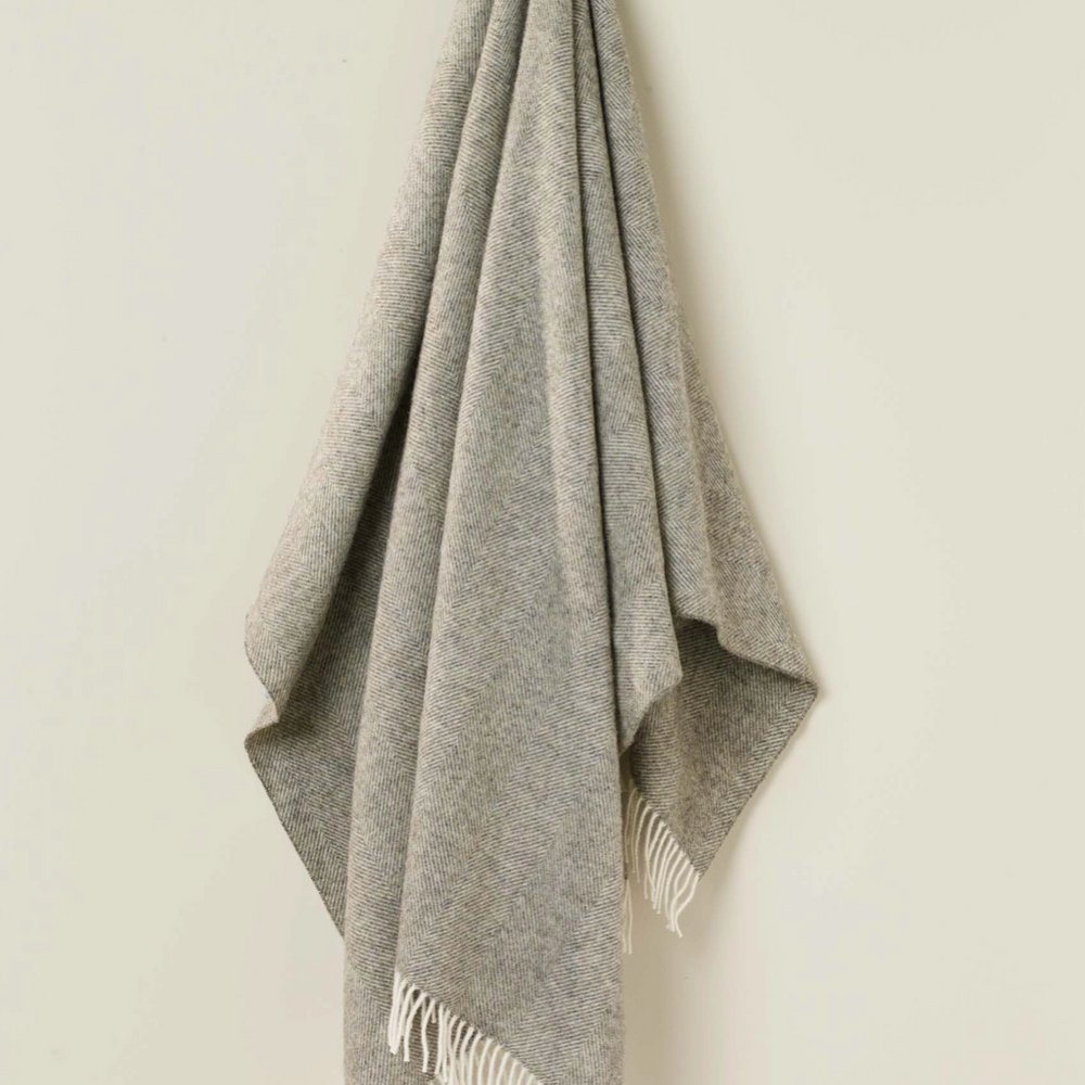 Bronte By Moon Herringbone Pure New Wool Throw, Vintage Grey
