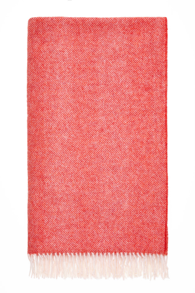 This stunning throw is made from 100 % pure supremely soft Shetland wool, in a gorgeous flame red colour featuring a classic herringbone pattern with tassels at each side, that will instantly uplift your sofas and armchairs.