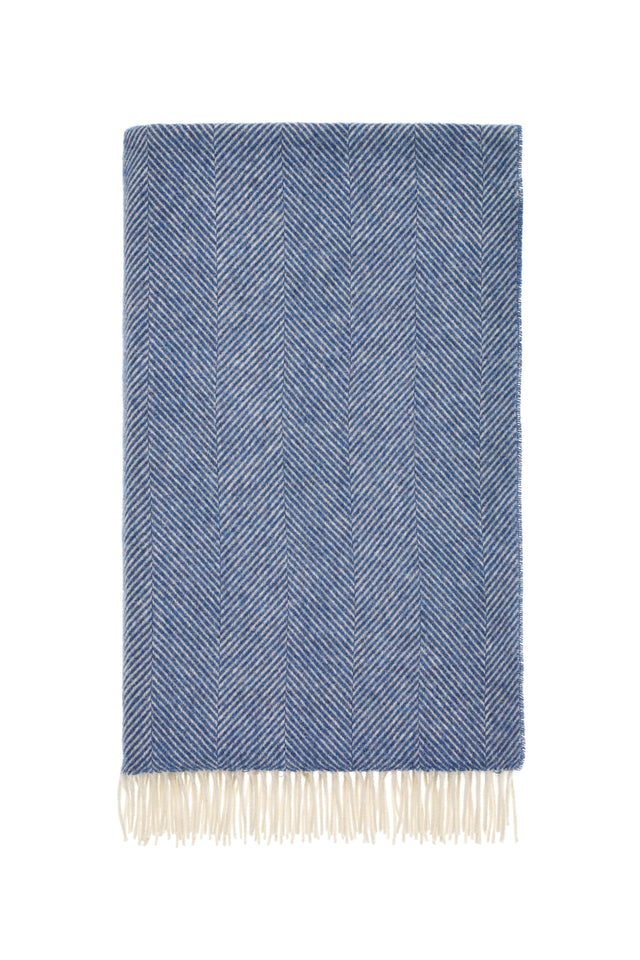 Bronte By Moon Herringbone Pure New Wool Throw, Blueberry