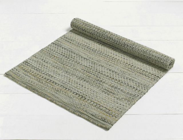 The Islay rug is made from 90 % wool in warm tones of grey with a hint of ocher hand weaved in a subtle geometric pattern with a lovely texture that is perfect for the entrance hall, kitchen or bedroom.
