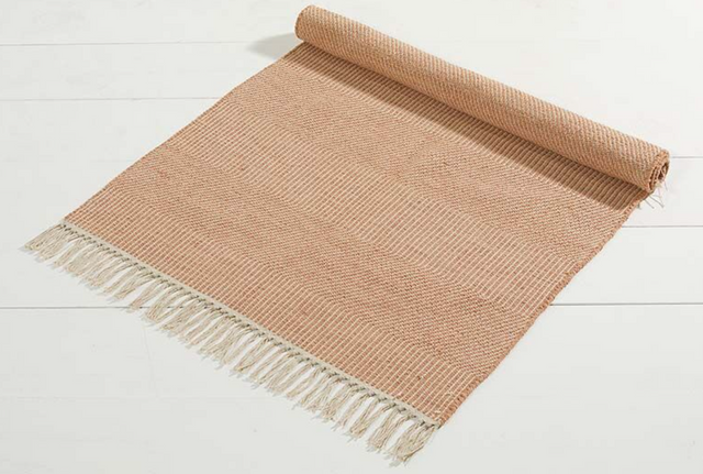 The Stockholm is a contemporary and versatile rug made from 100 % cotton featuring a subtle stripe design in a subtle blush peach colour and finished with a fringed edge, perfect for the entrance hall, kitchen or bedroom.