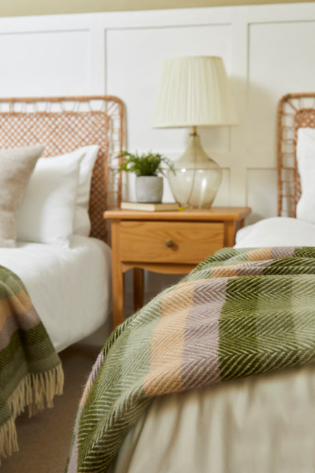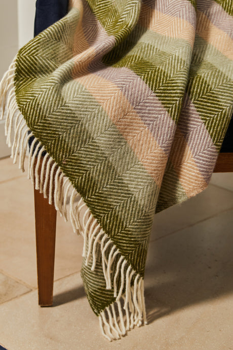 Tweedmill Meadow Check Pure New Wool Throw, Olive