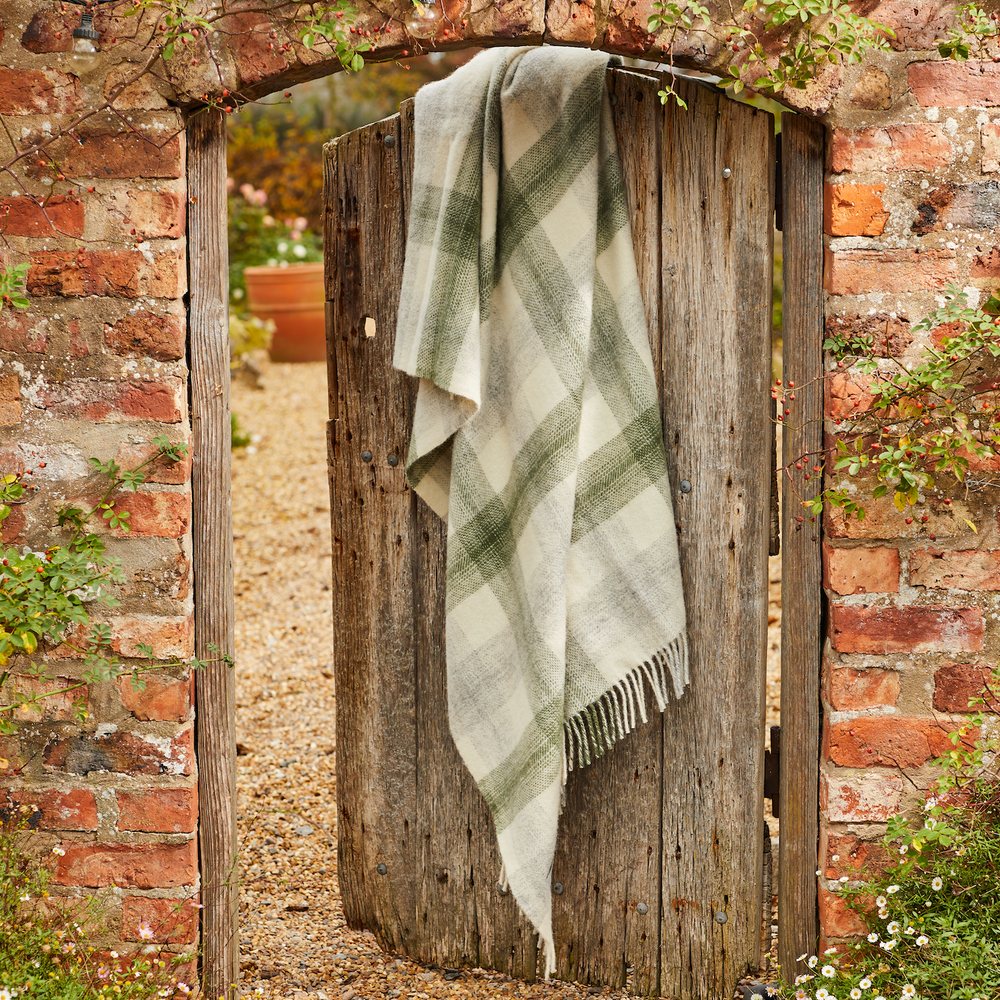 Tweedmill Meadow Check Pure New Wool Throw, Olive