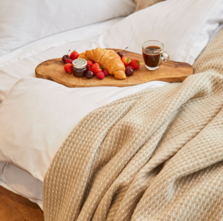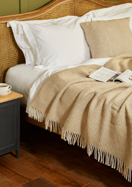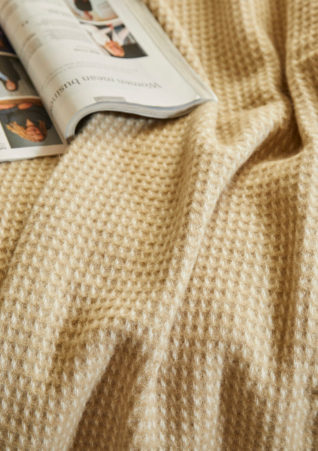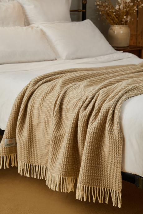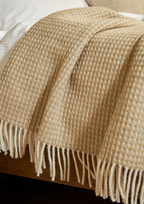 Tweedmill Waffle Pure New Wool Throw Blanket, Oatmeal