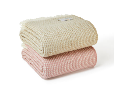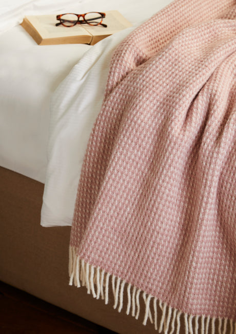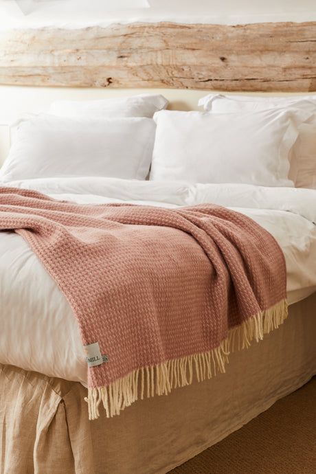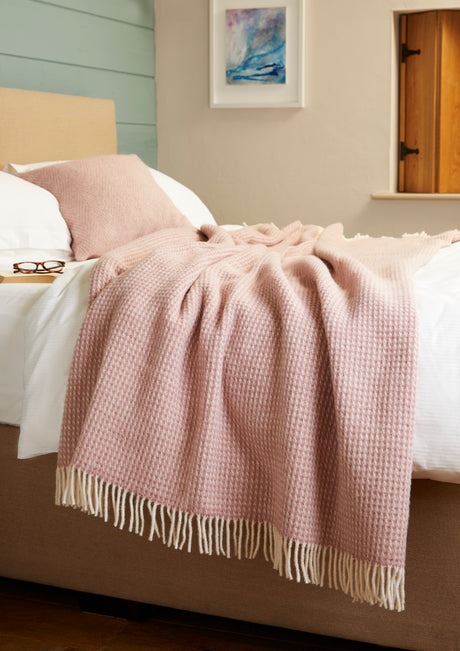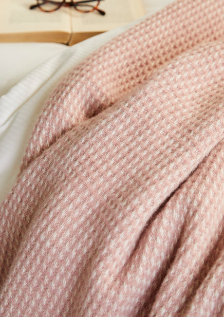 Tweedmill Waffle Pure New Wool Throw Blanket, Dusty Pink