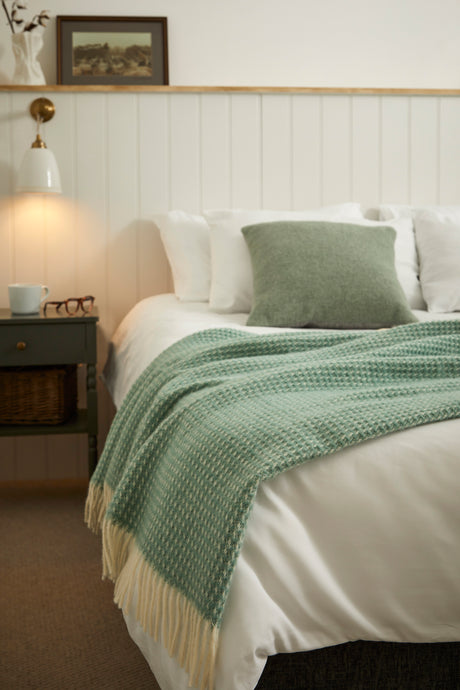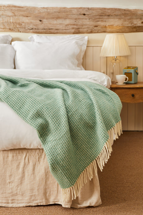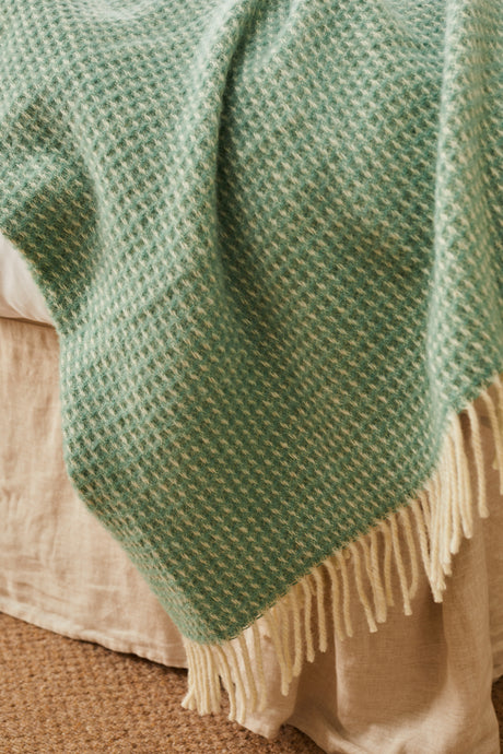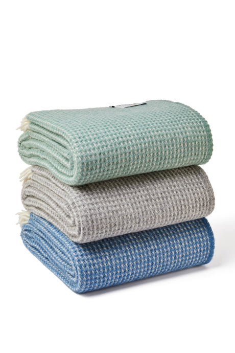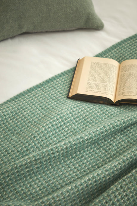 Tweedmill Waffle Pure New Wool Throw Blanket, Sea Green