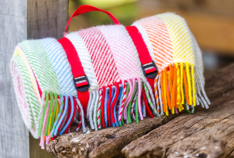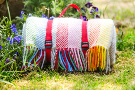Tweedmill Polo Pure Wool Knitted Picnic Blanket, Rainbow