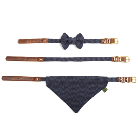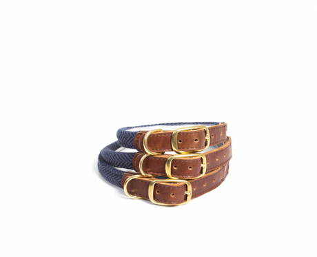 Tweedmill Rolled Tweed Dog Collar, Navy Blue