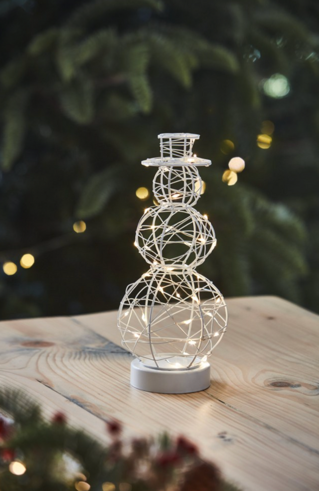 This gorgeous snowman features 40 warm white LEDs sparkling light that will Transform your home into a winter wonderland, use on the mantle, windows or shelf, add some green ivy, berries and pretty blooms around the base for a festive table centrepiece.