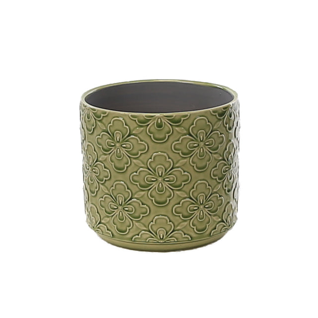 Flower Embossed Ceramic Plant Pot, Green - Medium: Ø 17 X H 15 CM is backordered and will ship as soon as it is back in stock.